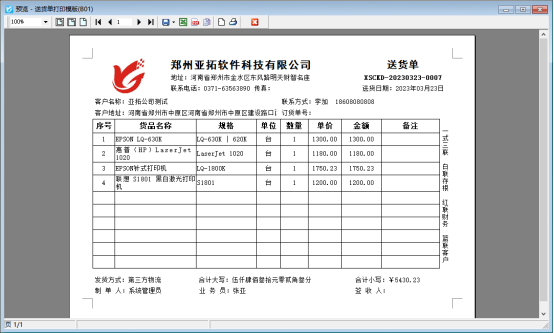 修改完成后保存打印格式模板,然后預(yù)覽打印模板,可看到單位名稱字體樣式已更改為楷體顯示。