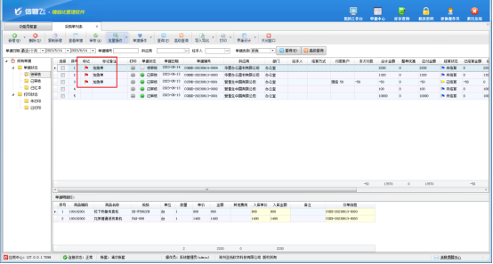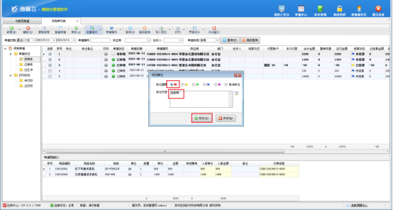 標(biāo)記備注后,采購(gòu)單列表界面會(huì)顯示標(biāo)記的內(nèi)容,如圖所示: