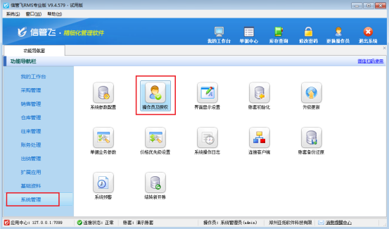 信管飛RMS軟件支持設(shè)置多個操作員登錄軟件,并且支持添加權(quán)限組,同一個權(quán)限組下的操作員權(quán)限是一樣的,不需要再重新設(shè)置操作員權(quán)限,本文以信管飛RMS軟件專業(yè)版為例演示一下如何更換操作員所在權(quán)限組到其他權(quán)限組?