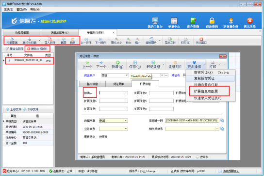 權(quán)限設(shè)置完成后,使用操作員賬號(hào)重新登陸軟件,開(kāi)單界面即可正常添加或刪除附件資料,如圖所示: