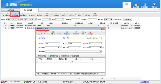 設(shè)置完成之后,退出軟件重新用操作員賬號登錄,此時報銷單可修改成功。