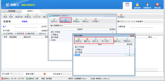功能導(dǎo)航欄點(diǎn)擊“業(yè)務(wù)處理”-》“新開送貨單”,進(jìn)入送貨單開單界面,點(diǎn)擊“發(fā)貨方式”后面的圖標(biāo),系統(tǒng)彈出“發(fā)貨方式維護(hù)”窗口,可以進(jìn)行新增、刪除、導(dǎo)入、導(dǎo)出等操作,維護(hù)好之后點(diǎn)擊“保存”按鈕進(jìn)行保存即可。