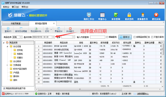 庫存盤點(diǎn)查詢功能則是信管飛RMS的另一大亮點(diǎn)。通過設(shè)定盤點(diǎn)日期,系統(tǒng)能夠快速生成指定日期之前的庫存情況報(bào)告,包括庫存數(shù)量、成本均價(jià)、庫存金額等詳細(xì)信息。這不僅簡化了盤點(diǎn)流程,提高了盤點(diǎn)效率,還能確保庫存數(shù)據(jù)的準(zhǔn)確性和完整性。
