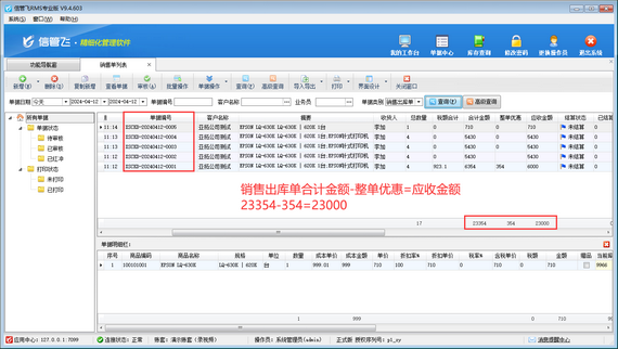 部分用戶在使用信管飛軟件時,存在以下問題,銷售單列表底部“合計金額 - 整單優惠≠應收金額”,無法查明原因,如下圖所示。