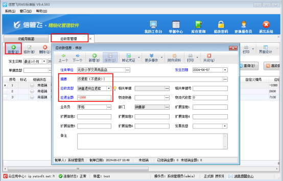 信管飛RMS軟件是集進(jìn)銷存、記賬一體的軟件,軟件默認(rèn)開進(jìn)出庫單據(jù)生成對應(yīng)的應(yīng)收應(yīng)付款,有客戶存在不退貨僅退款的情況,這種在軟件中應(yīng)該如何登記?本文以信管飛RMS標(biāo)準(zhǔn)版示范下。