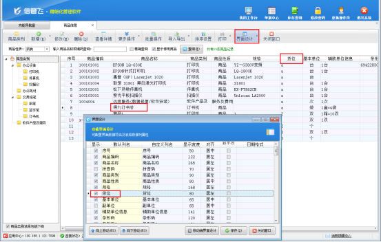 商品信息界面點(diǎn)界面設(shè)計(jì),可以把貨位顯示出來,方便快速查看。