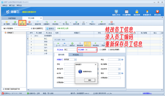 員工編碼補(bǔ)充完成后,重新添加操作員賬號即可添加成功,如下圖所示。