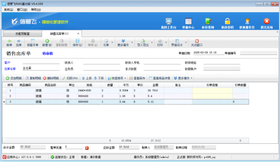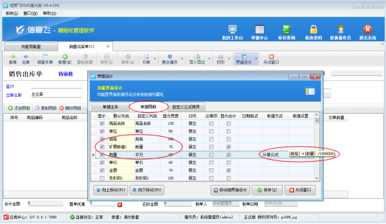 信管飛RMS(進(jìn)銷存管理軟件)、信管飛送貨單軟件、信管飛倉庫管理軟件等開單默認(rèn)是根據(jù)單價(jià)*數(shù)量自動(dòng)計(jì)算得出金額,如有其他的數(shù)據(jù)計(jì)算需求,軟件也支持自定義計(jì)算公式,本篇文章以銷售出庫單為例介紹一下如何自定義平方的計(jì)算公式?