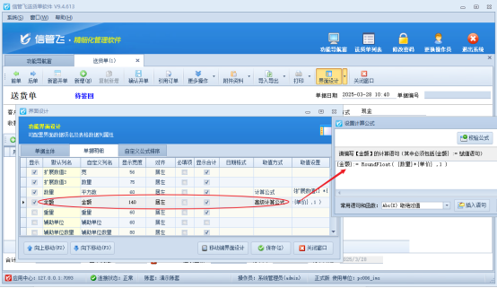 在當今快節奏的商業環境中,一款能夠靈活應對各種計算需求的進銷存管理軟件顯得尤為重要。信管飛系列軟件,如RMS進銷存管理軟件、送貨單軟件及倉庫管理軟件等,均支持開單時根據單價與數量自動計算金額。而針對更復雜的計算場景,軟件更提供了自定義計算公式的功能。本文將以送貨單軟件為例,詳細介紹如何自定義計算公式。