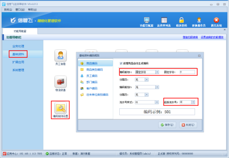 1.自定義編碼規(guī)則:根據(jù)企業(yè)需求設(shè)置前綴(如商品類別編碼、所屬部門編碼、固定字符)、分隔符、流水號樣式、流水號等組合規(guī)則;