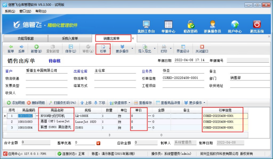 信管飛倉庫管理軟件、信管飛RMS軟件等都支持開采購入庫單和銷售出庫單,對于采購和銷售同一商品的用戶,軟件支持銷售出庫單直接引單采購入庫單,默認(rèn)引單會取采購入庫單的所有信息,如果銷售價格和采購價格不一樣,軟件支持銷售出庫單引用采購入庫單不引用價格信息,本文以“信管飛倉庫管理軟件”為例示范下如何操作? 在