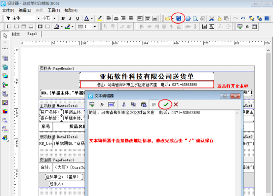 信管飛送貨單軟件、信管飛RMS軟件等可開銷售單和打印銷售單,軟件中默認(rèn)有十幾種打印模板格式,有用戶需要在打印模板上體現(xiàn)客戶的欠款信息,內(nèi)置模板中沒有此數(shù)據(jù)項,本文以內(nèi)置模板進(jìn)行示范如何添加客戶欠款數(shù)據(jù)項。 新開一個送貨單并保存,選擇客戶“亞拓軟件測試”開單,界面上顯示應(yīng)收款為1750(本單前應(yīng)收款),