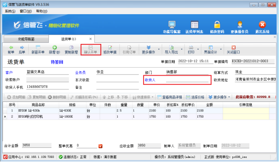 信管飛送貨單軟件、信管飛rms、信管飛倉庫管理軟件等支持開銷售單錄入收貨人信息,便于查詢單據(jù)商品是哪位客戶收到的貨物。也有客戶不需要開單時候輸入收貨人,對于不需要錄入收貨人信息的需求,軟件設(shè)置是否為必填項來進行控制收貨人是否為空顯示。 以送貨單軟件為例,示范下如何設(shè)置開單收貨人允許為空。送貨單界面設(shè)置收貨人是必填項