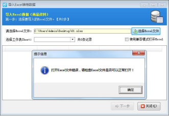 信管飛RMS、信管飛送貨單軟件、信管飛出納記賬系統(tǒng)都支持通過Excel導(dǎo)入數(shù)據(jù),通過Excel數(shù)據(jù)導(dǎo)入可以將數(shù)據(jù)方便快捷的導(dǎo)入到軟件中,省去了使用初期大量的數(shù)據(jù)的錄入所要消耗的時間及人力物力,并避免人為錄入造成的誤差,使數(shù)據(jù)的錄入簡單、準(zhǔn)確、高效。導(dǎo)入Excel數(shù)據(jù)時,如果是Excel2007以上版本的格式文件(.xlsx),系統(tǒng)提示:打開Exce