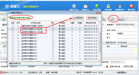 信管飛系列軟件都支持自定義設計打印模板,軟件單據中默認有設計好的打印樣式,有用戶存在打印有價格和無價格兩種送貨單的打印需求,這種在軟件中該如何設置?本文以“信管飛RMS軟件”為例示范下。 演示視頻觀看鏈接:http://m.uzaiuzai.com/news/video/202302/1917.h