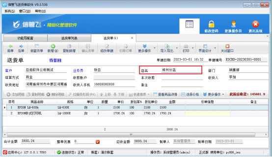 信管飛送貨單軟件、信管飛RMS軟件、信管飛倉庫管理軟件等支持在送貨單匯總對賬單(采購單、銷售單匯總表)、送貨明細對賬單(采購單、銷售單明細查詢)、訂單明細查詢(采購訂單、銷售訂單明細表)中設置擴展信息為查詢條件,可匯總單據明細或者單據主體項中擴展信息內容。 有用戶存在多家門店的情況,需要按照每家門店進