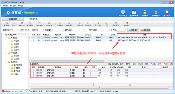 演示視頻觀看鏈接:送貨單軟件如何設(shè)置單據(jù)摘要顯示格式演示視頻 送貨單確認(rèn)開單后,系統(tǒng)可以自動(dòng)生成送貨單摘要內(nèi)容,默認(rèn)摘要顯示格式為“商品名稱 數(shù)量”,如下圖所示,同時(shí)系統(tǒng)也支持修改摘要顯示格式,本篇文章介紹一下送貨單軟件如何設(shè)置摘要顯示格式? 在功能導(dǎo)航窗點(diǎn)擊“系統(tǒng)管理”—》“系統(tǒng)參數(shù)設(shè)置