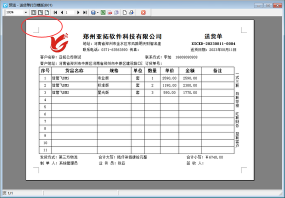 信管飛系列軟件支持自定義打印格式模板,有用戶在設(shè)計(jì)模板時(shí)會(huì)遇到以下的問題,超出打印范圍的文本框找不到,也無法刪除,如下圖所示,本篇文章介紹一下操作方法。 演示視頻觀看鏈接:設(shè)計(jì)模板時(shí)超出打印范圍的文本框如何刪除演示視頻 以送貨單軟件為例,打開一個(gè)送貨單,在單據(jù)界面工具欄點(diǎn)擊“打印”—》“打
