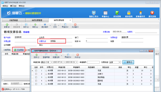 此文章相關(guān)演示視頻:按商品填開發(fā)票時(shí)提示軟件已啟用對(duì)賬單,如何解決? 企業(yè)在開采購入庫單和銷售出庫單時(shí)都存在開發(fā)票的情況,信管飛RMS發(fā)票管理功能可以讓企業(yè)高效快速地管理發(fā)票信息。 有用戶在填開發(fā)票時(shí),會(huì)出現(xiàn)按商品無法填開發(fā)票的情況,系統(tǒng)提示“軟件已啟用