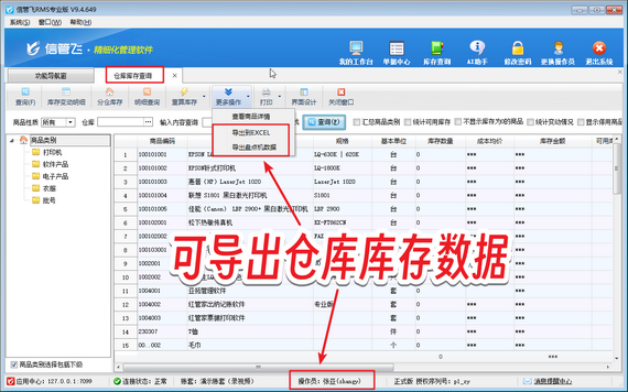 信管飛RMS支持倉庫庫存查詢功能,倉庫庫存查詢可以查看存貨的實時庫存情況,包括庫存數量、庫存成本情況等,同時支持導出倉庫庫存數據。若操作員賬號登錄軟件無法導出倉庫庫存數據,通常源于操作員權限未啟用,本篇文章為您呈現高效解決方案。 演示視頻觀看鏈接:操作員無法導出倉庫庫存數據,如何解決演示視頻
