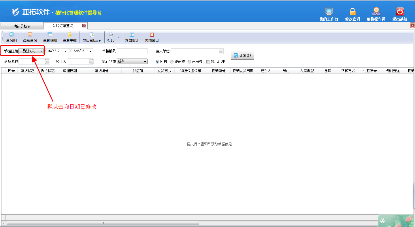 亞拓管理軟件(精細化管理軟件、進銷存管理軟件、記賬軟件)及紅管家倉庫管理軟件內(nèi)都包含了統(tǒng)計查詢功能(采購單匯總表、銷售單匯總表、銷售單明細查詢、銷售毛利匯總等統(tǒng)計查詢報表),軟件內(nèi)統(tǒng)計查詢功能默認的查詢?nèi)掌跒椤白罱?個月”(如下圖一所示),但是如果需要修改默認查詢?nèi)掌冢撊绾涡薷哪兀肯旅嫖覀円詠喭毓芾碥浖䦟I(yè)版為例詳細介紹下軟件內(nèi)如何修改默認查詢?nèi)掌凇D一&nb