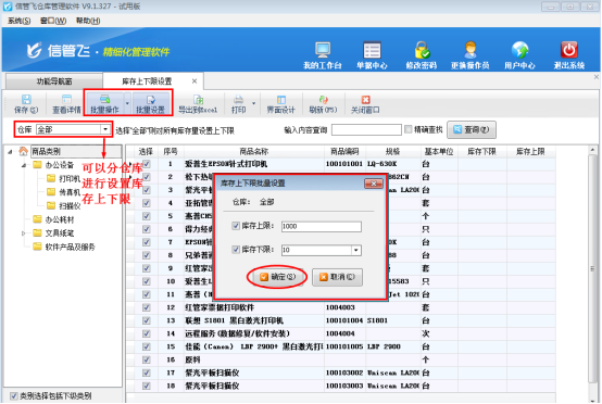 信管飛倉庫管理軟件、信管飛RMS支持庫存管理功能,為了更直觀的發現庫存數量,軟件中可以對商品庫存數量進行庫存上下限設置,并可以在倉庫管理模塊中的“相關查詢統計”中進行庫存預警查詢。以信管飛倉庫管理軟件為例,我們介紹一下如何設置庫存的上下限數量。 在功能導航窗選擇“倉庫管理”—》“庫存上下限設置”進入庫存上下限設置界面,如圖1