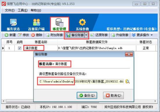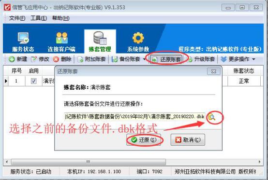 亞拓旗下所有軟件安裝完成后,數據備份均保存在安裝軟件目錄下的賬套文件備份文件夾中,如需要更換電腦使用,需要把最近日期的備份數據復制到新的電腦上,在新的電腦上安裝好軟件,在應用中心程序中對之前的賬套備份數據進行還原操作,就可以把之前的所有數據同步到這個電腦上。 本文章以信管飛出納記賬軟件為例,演示下如何還原賬套備份。