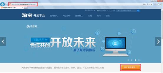 1、注冊(cè)并加入淘寶開發(fā)平臺(tái)(1)訪問淘寶開放平臺(tái)網(wǎng)頁(http://open.taobao.com/index.htm)(2)點(diǎn)擊“加入開放平臺(tái)”,進(jìn)入登錄界面,填寫淘寶網(wǎng)店的用戶名和密碼登錄,系統(tǒng)進(jìn)入申請(qǐng)頁面,如下圖所示:輸入聯(lián)系人姓名、聯(lián)系人手機(jī)、電子郵件,并進(jìn)行驗(yàn)證,驗(yàn)證后,點(diǎn)“提交”按鈕。提交后,點(diǎn)擊“進(jìn)入開發(fā)者中心”或者點(diǎn)擊網(wǎng)頁右上角的“我的控制臺(tái)”——》“開發(fā)者中心”。同意淘寶開放平臺(tái)