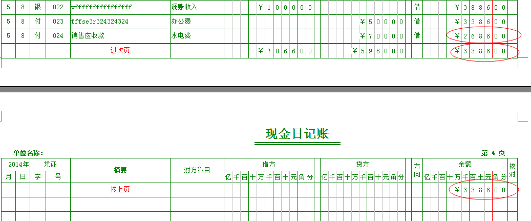 紅管家財(cái)務(wù)出納記賬系統(tǒng)和紅管家出納軟件免費(fèi)版中的現(xiàn)金賬簿和銀行賬簿,在帳頁(yè)剛好滿頁(yè)時(shí)存在一個(gè)Bug,如下圖所示: 上圖所示的“過次頁(yè)的余額”本應(yīng)該為2686.00,但賬簿中卻顯示為:3386.00,也即此頁(yè)最后一個(gè)憑證的上一個(gè)憑證的余額。出現(xiàn)這個(gè)Bug的問題在于程序采用的報(bào)表控件存在缺陷導(dǎo)致。如果再錄入一個(gè)憑證,這個(gè)錯(cuò)誤就會(huì)