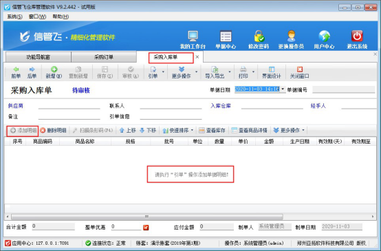 信管飛倉庫管理軟件、信管飛RMS軟件等支持管理倉庫庫存,倉庫庫存的增減根據(jù)對應(yīng)的采購入庫單和銷售出庫單審核后自動計算,有部分用戶下采購單時先提交一個訂單,然后采購員根據(jù)訂單進(jìn)行實際采購,采購?fù)瓿珊筮M(jìn)行入庫操作,為避免手動輸入出錯,軟件支持設(shè)置采購入庫單只能通過引用訂單生成。本文以“信管飛倉庫管理軟件”為例,示范下如何進(jìn)行設(shè)置?