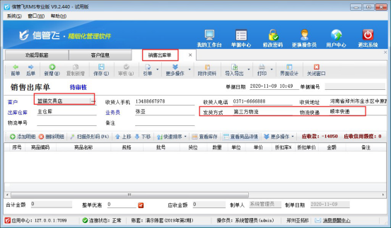 此文章相關(guān)演示視頻:如何設(shè)置客戶默認(rèn)發(fā)貨方式 信管飛RMS軟件、信管飛送貨單軟件等都支持開銷售送貨單,銷售單已開的客戶存在發(fā)貨情況,軟件中支持發(fā)貨方式有三種:第三方物流快遞、公司配送、客戶自提。如果此客戶是固定的發(fā)貨方式,軟件可支持直接在客戶信息中固定好發(fā)貨方式,開單會自動調(diào)取,不需要開單再次選擇。&